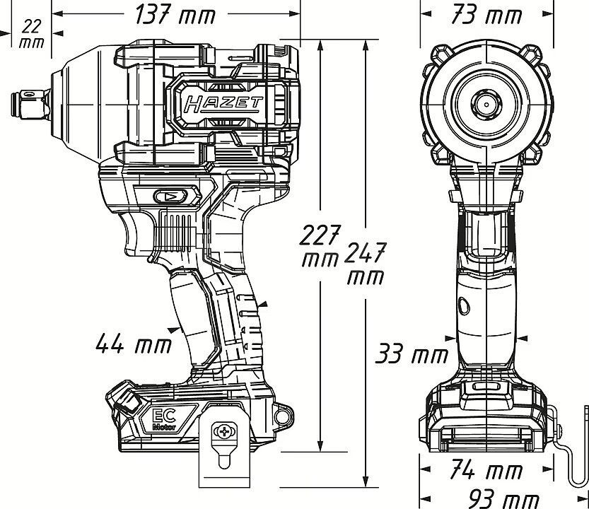 - Kompatibilný s akumulátormi HAZET 9500-05 a HAZET 9500-025