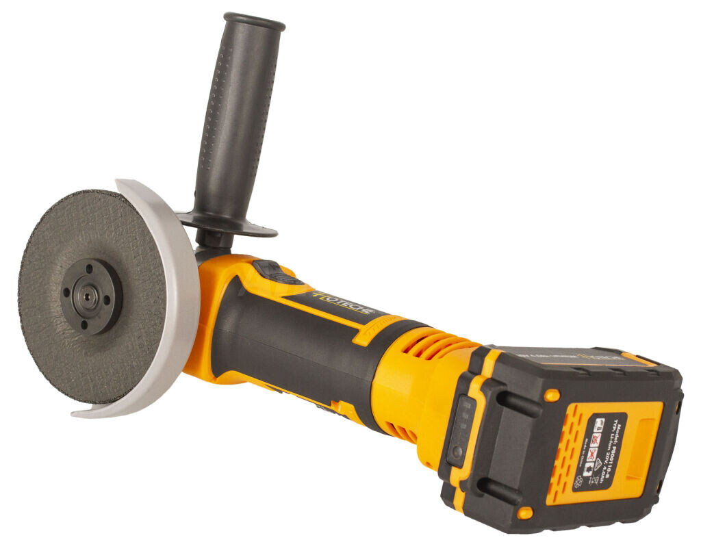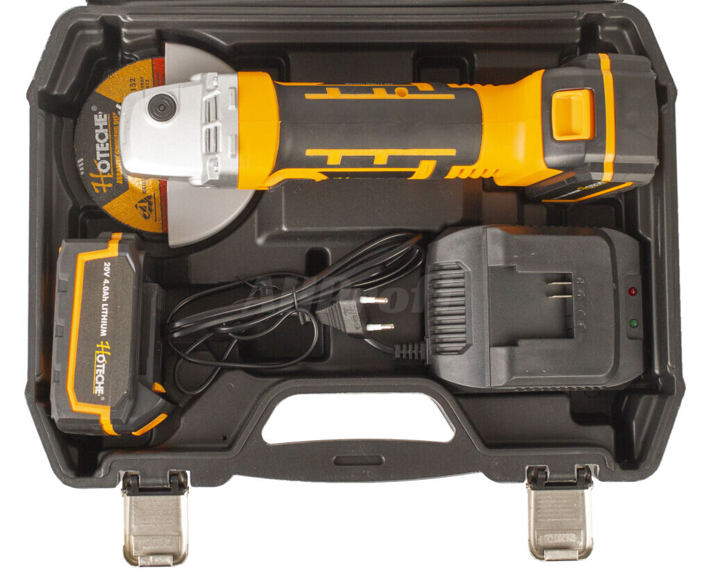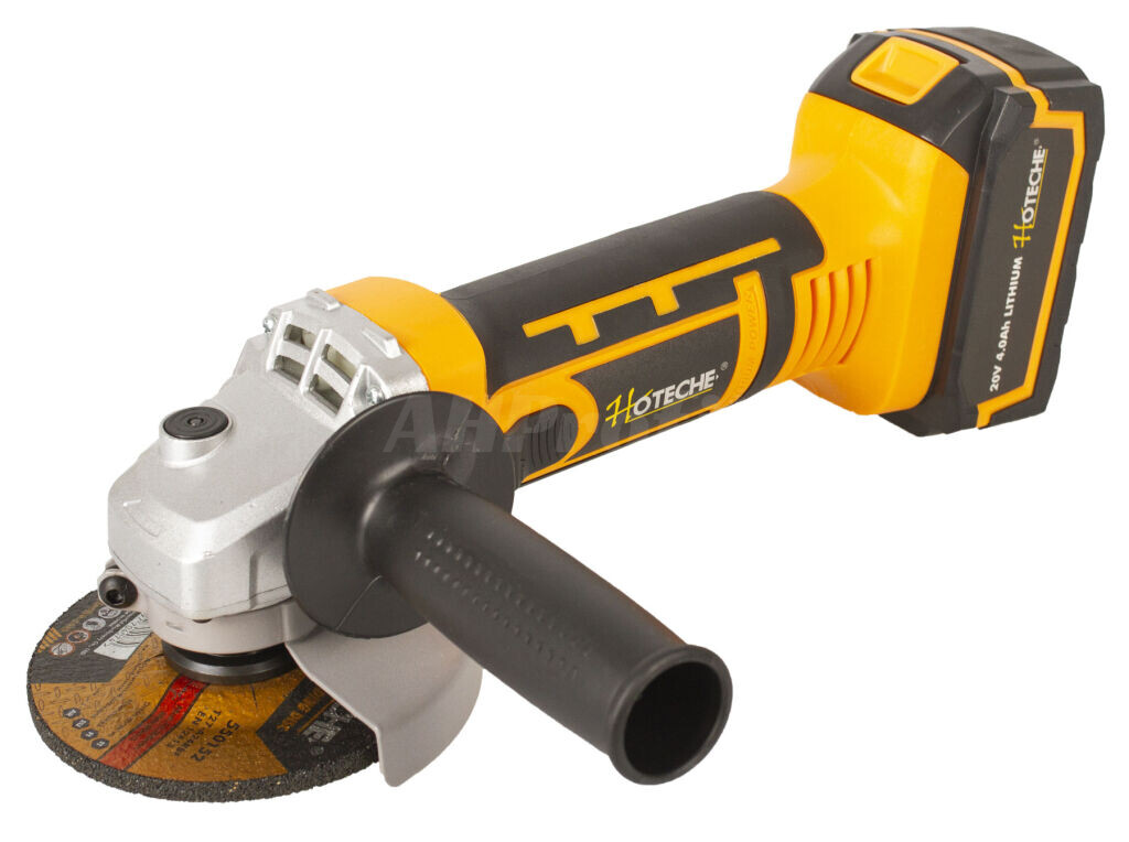 Kompaktná AKU uhlová brúska od značky Hoteche s výkonným motorom, ktorý je schopný dosiahnuť vo voľnobežných otáčkach až 8000 za minútu.