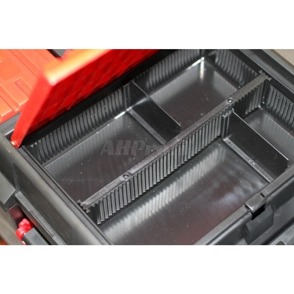 Spomínané parametre a výbava robí z tohto kufra perfektný skladovací priestor s vynikajúcou variabilnou organizáciou, ktorý každému inštalatérovi uľahčí prácu a prenášanie potrebného náradia.