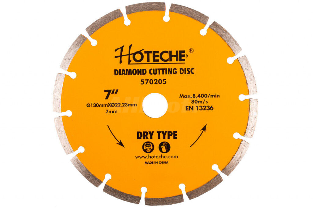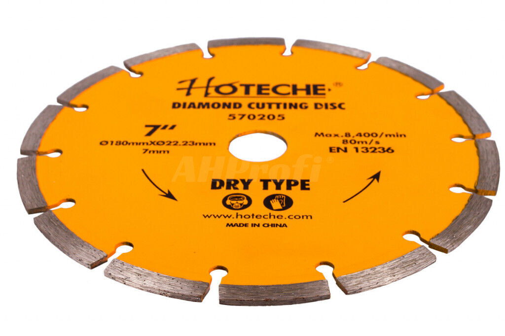Ø 180mm, Ø otvora 22,23mm, 80m/s, max. 8400 ot./min., rezný, segmentový, výška segmentu 7 mm.