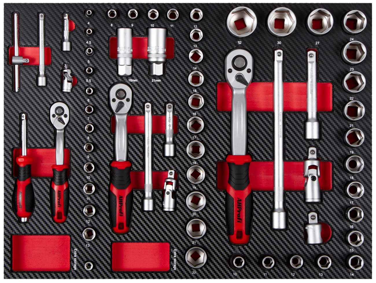| 15 ks | Nástrčné hlavice 3/8″: 8, 9, 10, 11, 12, 13, 14, 15, 16, 17, 18, 19, 20, 21, 22 mm |