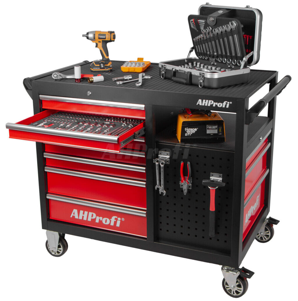 | Vozík obsahuje: | Siko kliešte, Kladivo / palička, Vyrážače, Krížové skrutkovače, Očkové kľúče, Dlhé nástrčné kľúče, Kardanový kĺb, Torx, Kombinované kliešte, Očkoploché kľúče, Bity, Sada bitov, Imbus, Štiepacie kliešte, Kliešte na poistné krúžky, Nástrčné kľúče na kolesá, Predlžovacie nástavce, Gola sada, Skrutkovače, Kliešte, Nástrčné kľúče, Ploché skrutkovače |