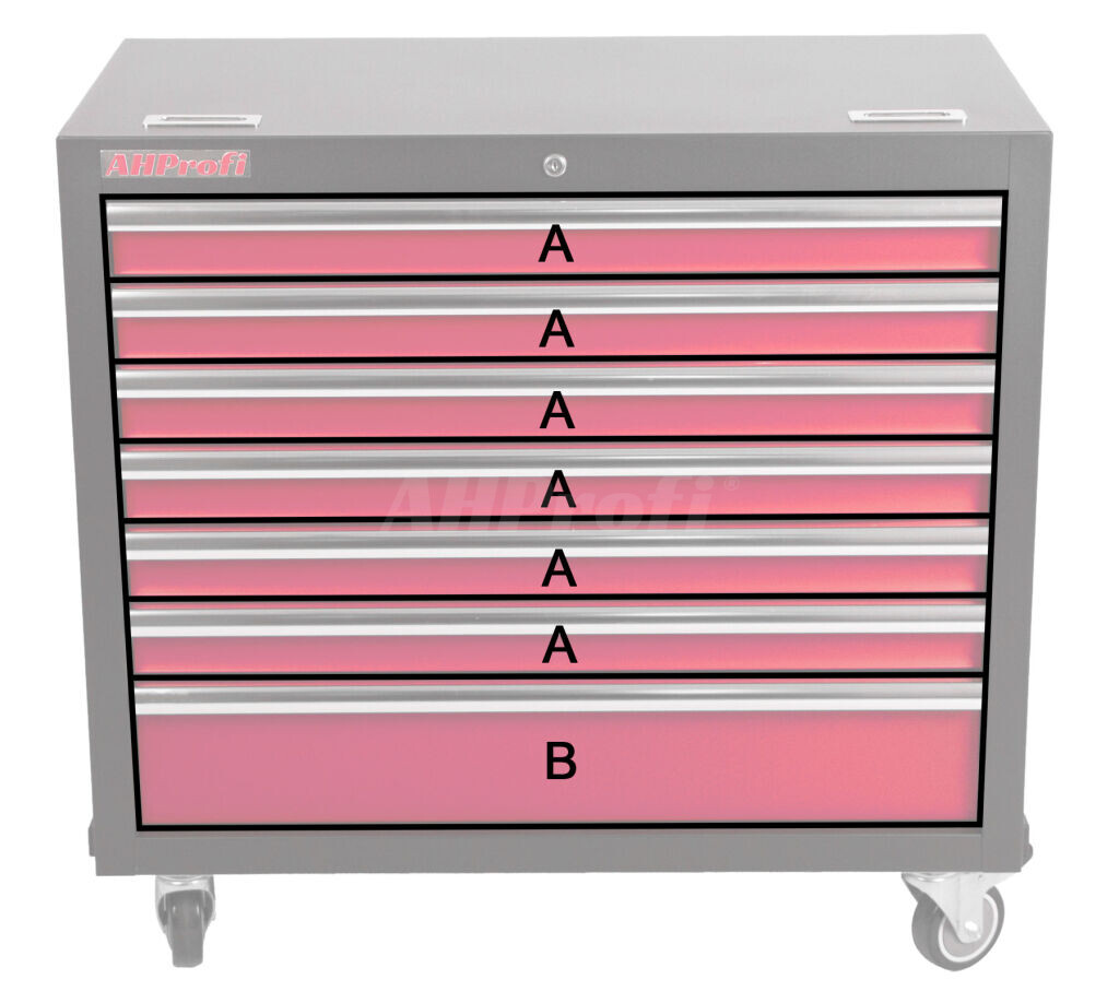 Súčasťou vozíka je 7 uzamykateľných zásuviek na uloženie výplní dielenského vozíka s ručným náradím. Zásuvky sú osadené guličkovými ložiskami v pojazdoch, čím sa zvyšuje ich nosnosť bez vplyvu na výbornú vlastnosť výjazdu / zachádzania.