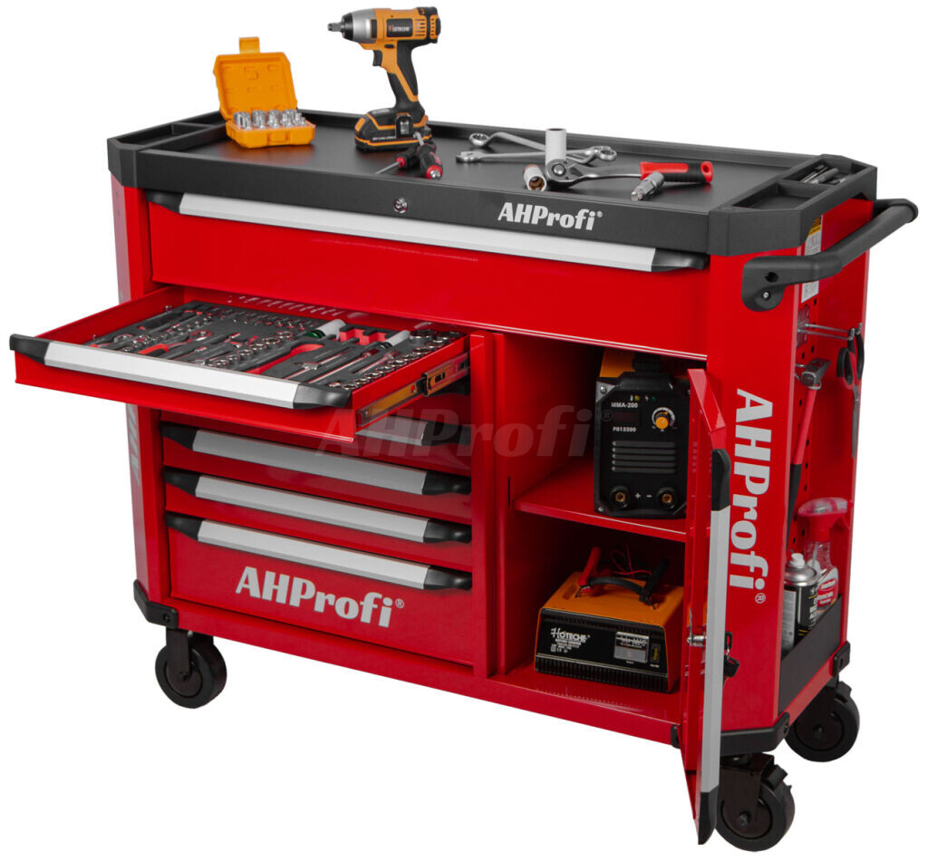 | Vozík obsahuje: | Ploché skrutkovače, Gola sada, Skrutkovače, Kliešte, Nástrčné kľúče, Očkové kľúče, Dlhé nástrčné kľúče, Siko kliešte, Kladivo / palička, Vyrážače, Krížové skrutkovače, Bity, Sada bitov, Kardanový kĺb, Torx, Kombinované kliešte, Očkoploché kľúče, Predlžovacie nástavce, Imbus, Štiepacie kliešte, Kliešte na poistné krúžky, Nástrčné kľúče na kolesá |