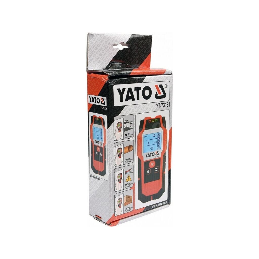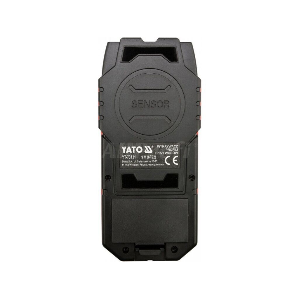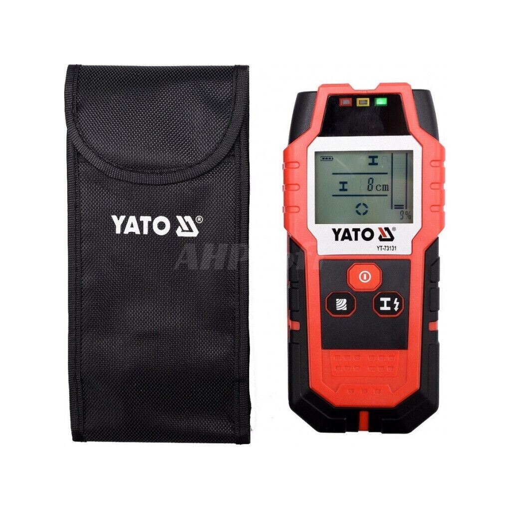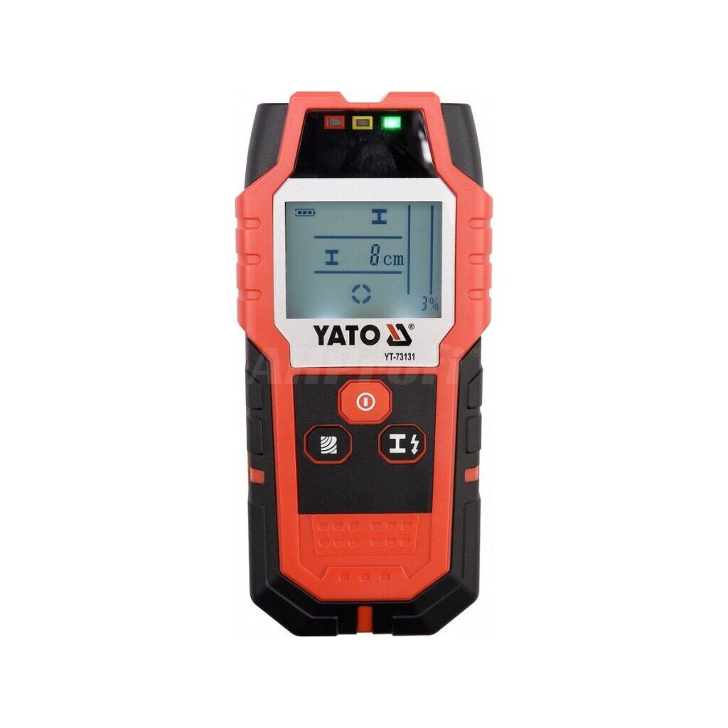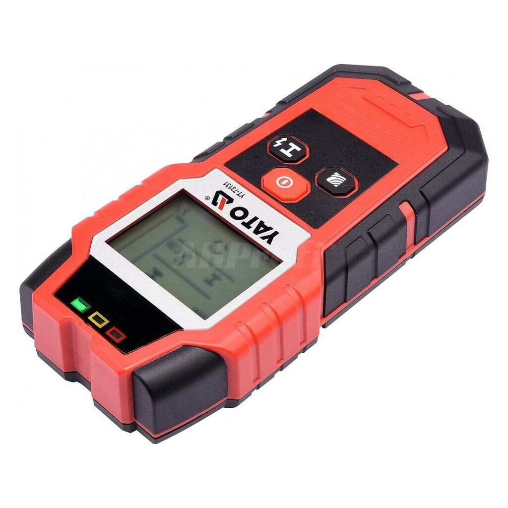 Profesionálny digitálny detektor Yato-73131 s veľkým, čitateľným a LED podsvieteným displejom, vhodný na vyhľadávanie drôtov, vodičov, dátových káblov, železných aj neželezných profilov.