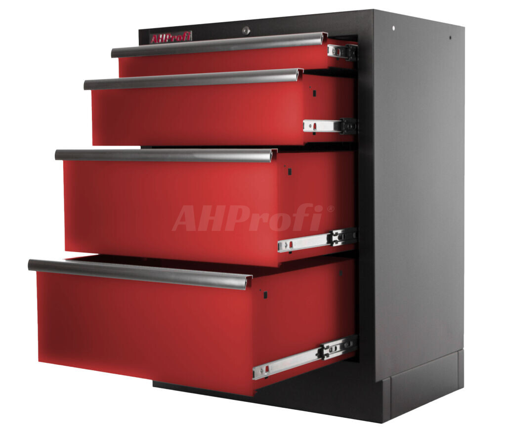 Dielenský nábytok PROFI RED s drevenou doskou zaujme moderným a profesionálnym vzhľadom. Kombinácia červenej RAL 3031 a čiernej RAL 9004 sa bude vynímať v každej garáži aj dielni.
