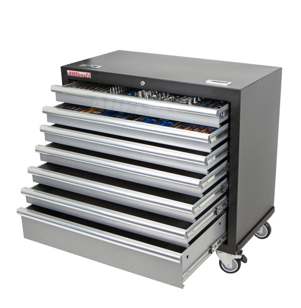 | Vozík obsahuje: | Predlžovacie nástavce, Kardanový kĺb, Samosvorné kliešte, Kladivo / palička, Bity, Ploché skrutkovače, Imbus, Vyrážače, Očkoploché kľúče, Torx, Krížové skrutkovače, Gola sada, Štiepacie kliešte, Nástrčné kľúče, Sekáče, Kombinované kliešte, Dlhé nástrčné kľúče, Siko kliešte, Nastaviteľný kľúč |
