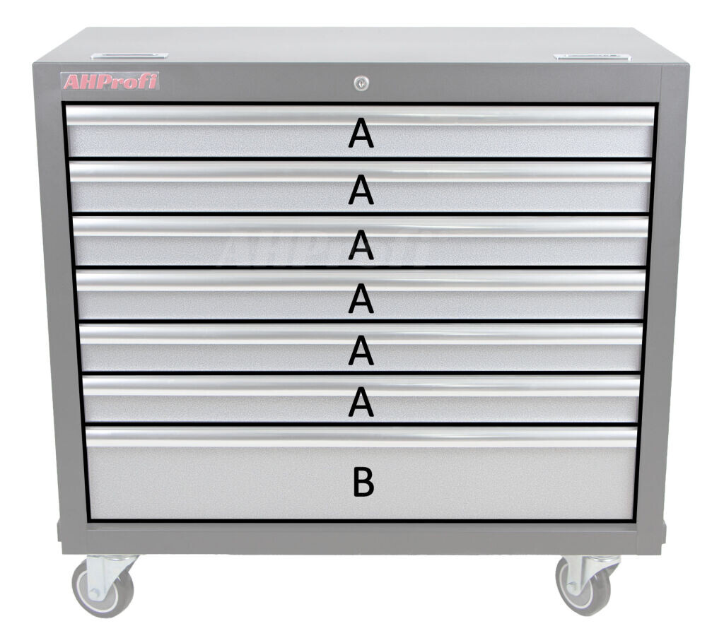 Súčasťou vozíka je 7 uzamykateľných zásuviek pre uloženie výplní dielenského vozíka s ručným náradím. Zásuvky sú osadené guličkovými ložiskami v jazdcoch, čím sa zvyšuje ich nosnosť bez vplyvu na výbornú vlastnosť vychádzania / státia.