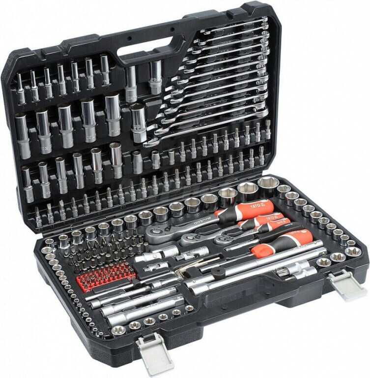 Goly 1/2 ", 3/8", 1/4 "+ 216 ks príslušenstva (nástavcov, predlžovacích nástavcov, račne s plastovou rukoväťou, kĺbové nadstavce očkoploché kľúče a ďalšie).