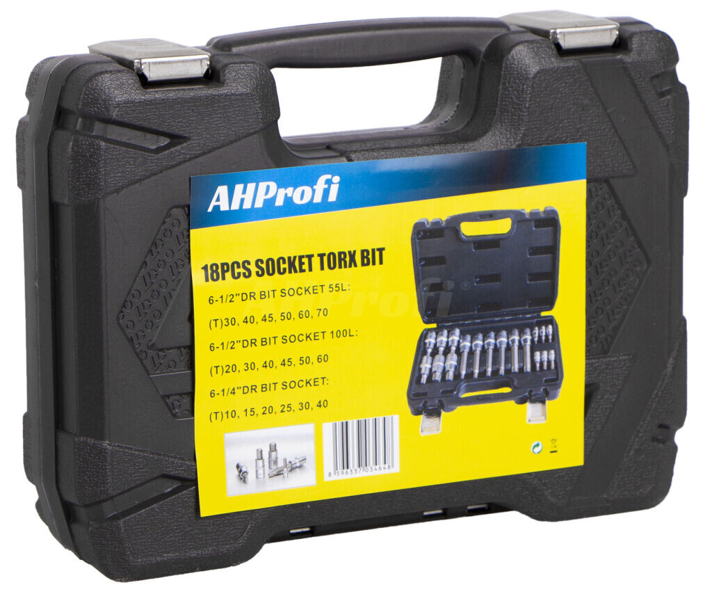 Hlavice s bitmi TORX 18 ks 1/2" a 1/4" v kovovom boxe - AH121801