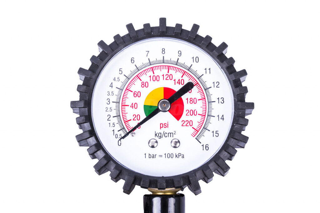 Analógový manometer. Rozsah 0 - 16 bar. Pripojenie 1/4". Manometer s ochranným pryžovým opláštením, vhodné pre malé a stredné automobily a motocykle.