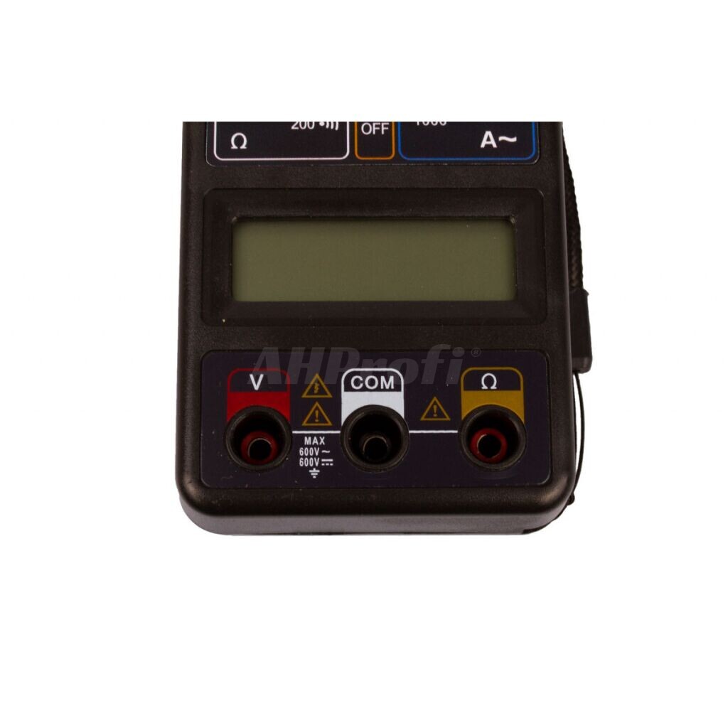 Kliešťový multimeter je dodávaný v praktickom obale, v ktorom sú priložené hroty na meranie, pútko, ktoré zabrání pádu na zem, a 9V batéria, ktorou je prístroj napájaný.