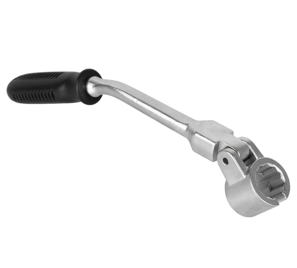 Ohnutý nástrčkový kľúč HEX s kĺbom s veľkosťou 22 mm a dĺžkou 250 mm. Uhol ohnutie: 30 °.