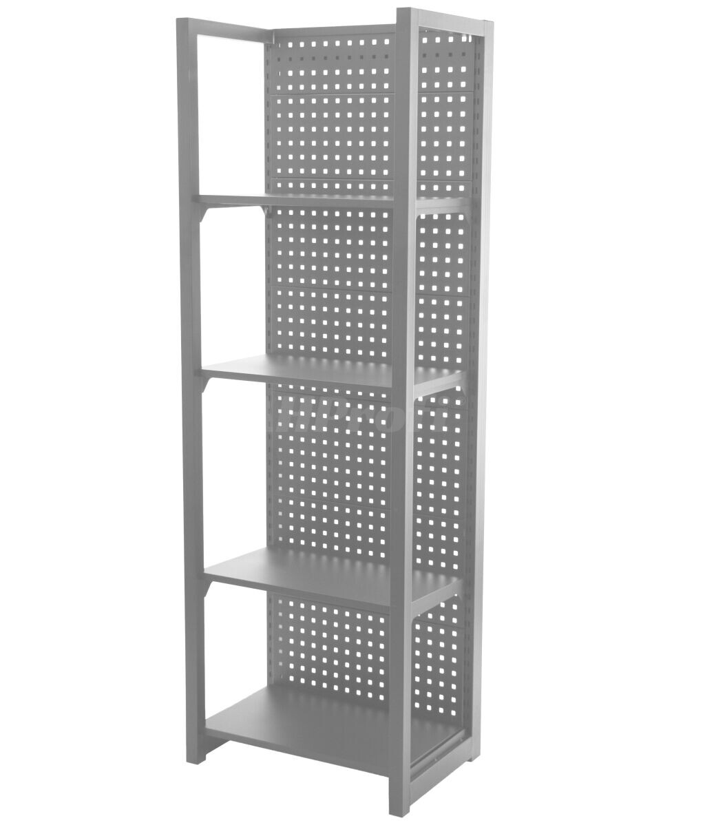 Policový regál so zadnou dierovanou doskou, 4 police, rozmery 680 x 458 x 2000 mm.