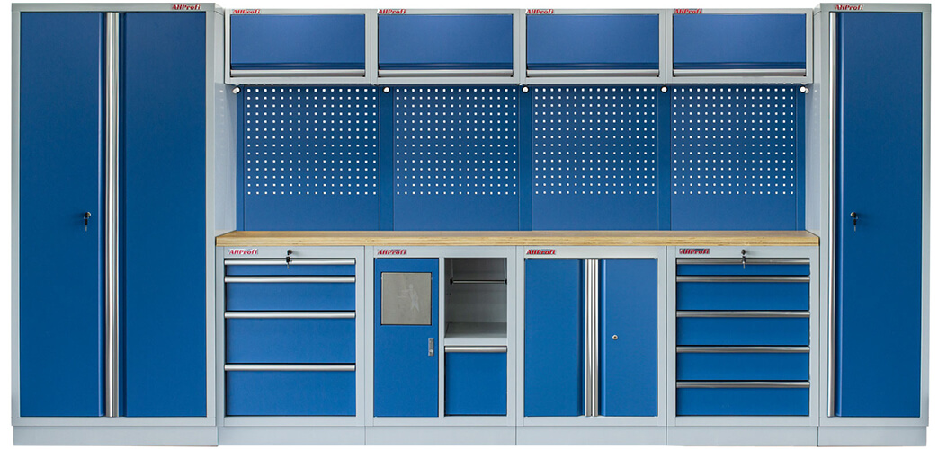 Zostava nábytku v sebe skrýva dostatočné množstvo úložného priestoru pre vaše náradie, autotechniku aj dielenské vybavenie. V kombinácii s robustnou pracovnou doskou získate multifunkčnú stenu, s ktorou vám práca pôjde od ruky vo všetkých smeroch.