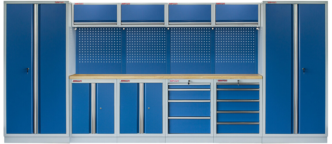 Zostava nábytku v sebe skrýva dostatočné množstvo úložného priestoru pre vaše náradie, autotechniku aj dielenské vybavenie. V kombinácii s robustnou pracovnou doskou získate multifunkčnú stenu, s ktorou vám práca pôjde od ruky vo všetkých smeroch.