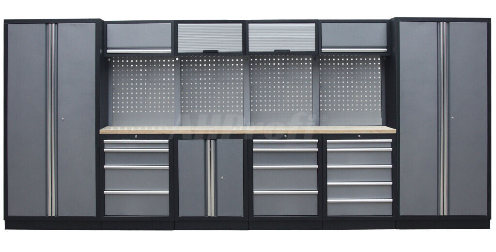 Zostava nábytku v sebe skrýva dostatočné množstvo úložného priestoru pre vaše náradie, autotechniku aj dielenské vybavenie. V kombinácii s robustnou pracovnou doskou získate multifunkčnú stenu, s ktorou vám pôjde práca od ruky vo všetkých smeroch.