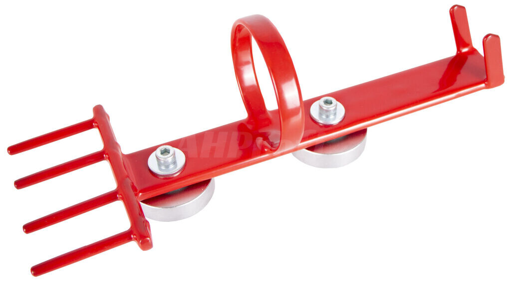 Magnetický kovový držiak na pneumatický uťahovák, momentový kľúč a nástrčné hlavice je výborným riešením pre ukladanie ručného náradia, budete ho tak mať neustále po ruke a pri práci sa nepovaľují na zemi, kde hrozí riziko poškodenia. Držiak sa obvykle pripevňuje na pojazdný dielenský vozík.