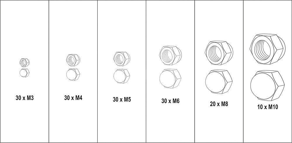 Matice metrické, kloboukové sada 150 ks - YT-06775