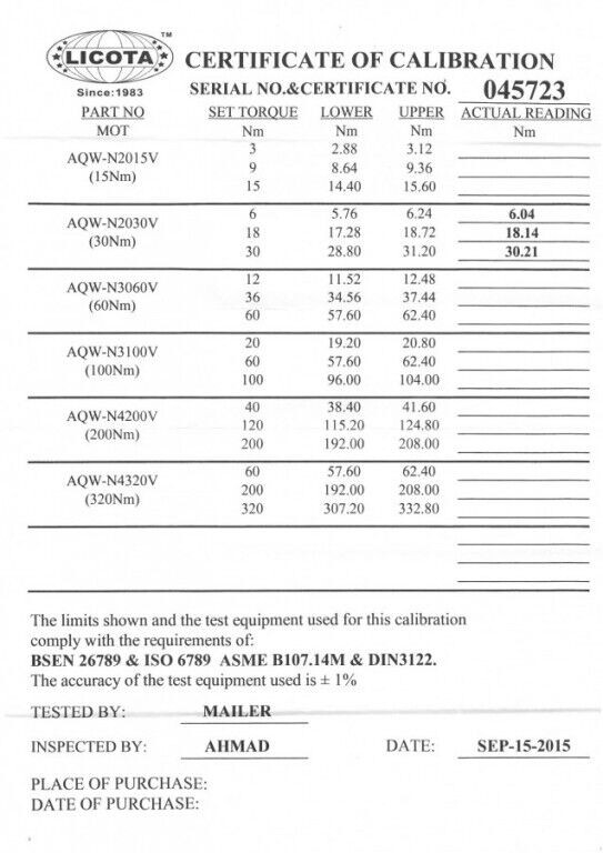 - Momentový kľúč LICOTA 1/4" s certifikátom, 6-30...