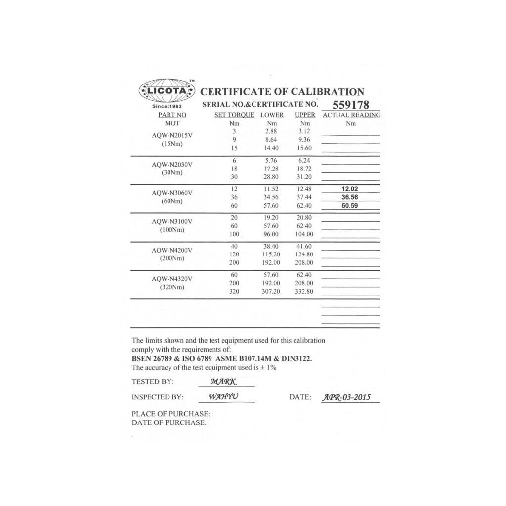 - Momentový kľúč LICOTA 3/8" s certifikátom, 10-60...