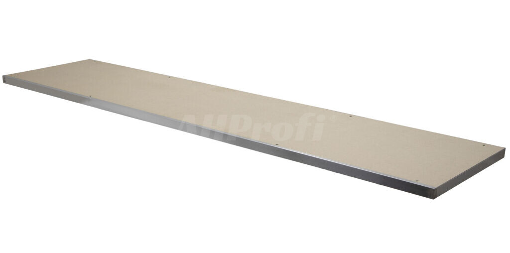 Precízna drevená pracovná doska prekrytá nerezovým plechom 2365x463x36 mm. Pracovná doska je vrátane predvŕtaných otvorov s maticami pre pripevnenie ku kovovej konštrukcii či PROFI dielenským skrinkám.