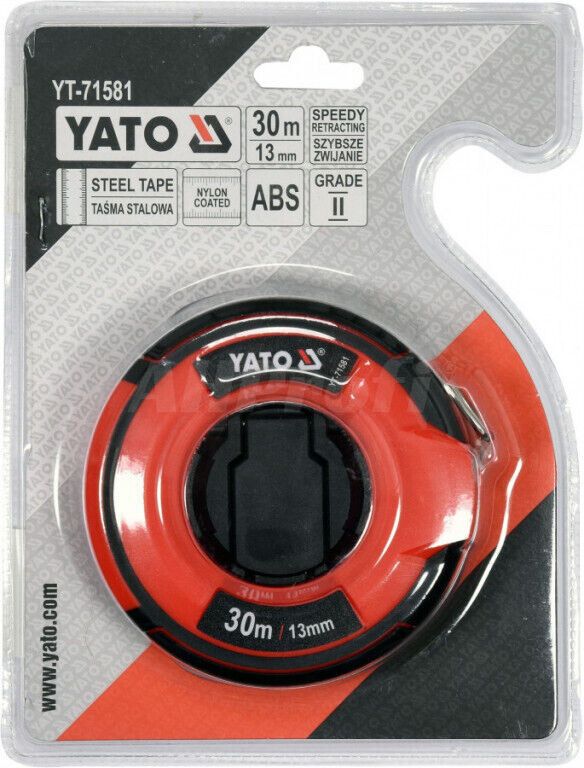Měřící pásmo o délce 30 m s šířkou 13 mm. Konstrukce z odolného ABS plastu, pásmo z ocele.