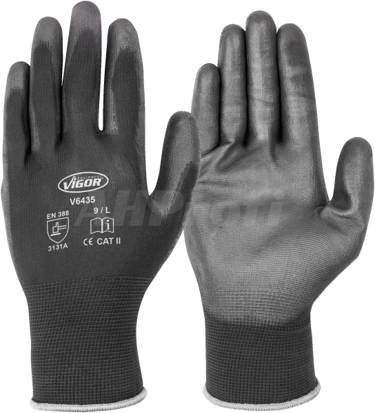 Pracovné rukavice Vigor, veľkosť L. Vyrobené z polyesteru s protišmykovou latexovou vrstvou. Ergonomický pohodlný strih, široká oblasť použitia.