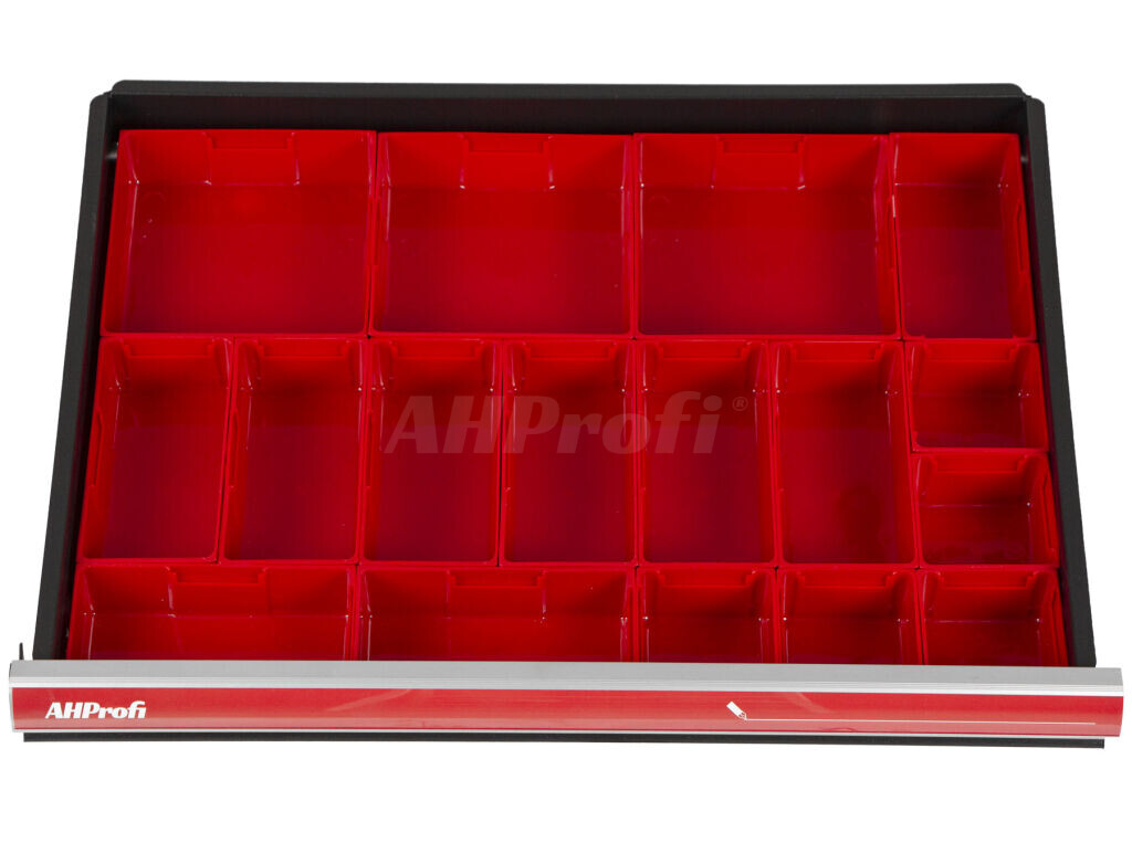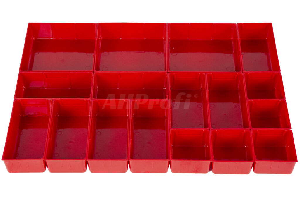 Sada 17 ks plastových boxov do zásuviek vozíkov alebo dielenských stolov.