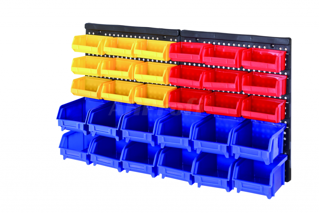 - Plastový rám s 30 zásobníkmi pre dokonalú organizáciu v dielni.