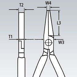 9 mm široké čeľuste, sú sploštené až na 1,5 mm. Plochy čeľustí hladké. Chrómvanádiová elektrooceľ, kovaná, kalená v oleji.