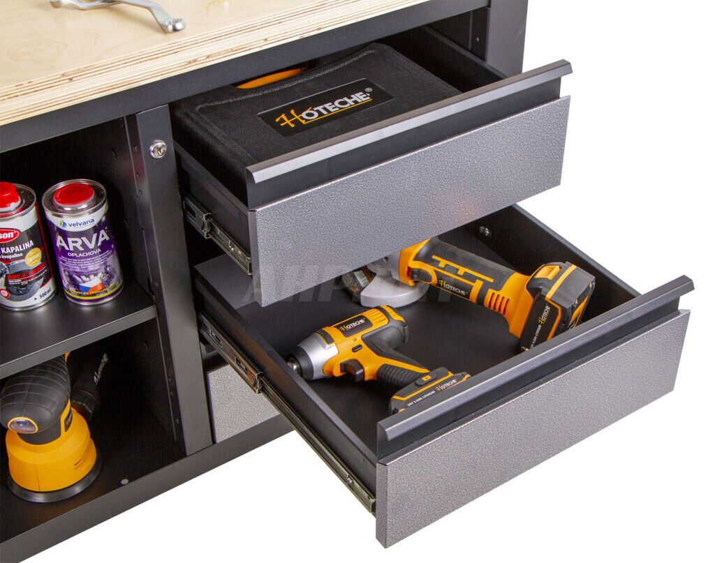 Do šuplíku môžete uskladniť svoje náradie ako napr. uťahovák alebo AKU brúsku.