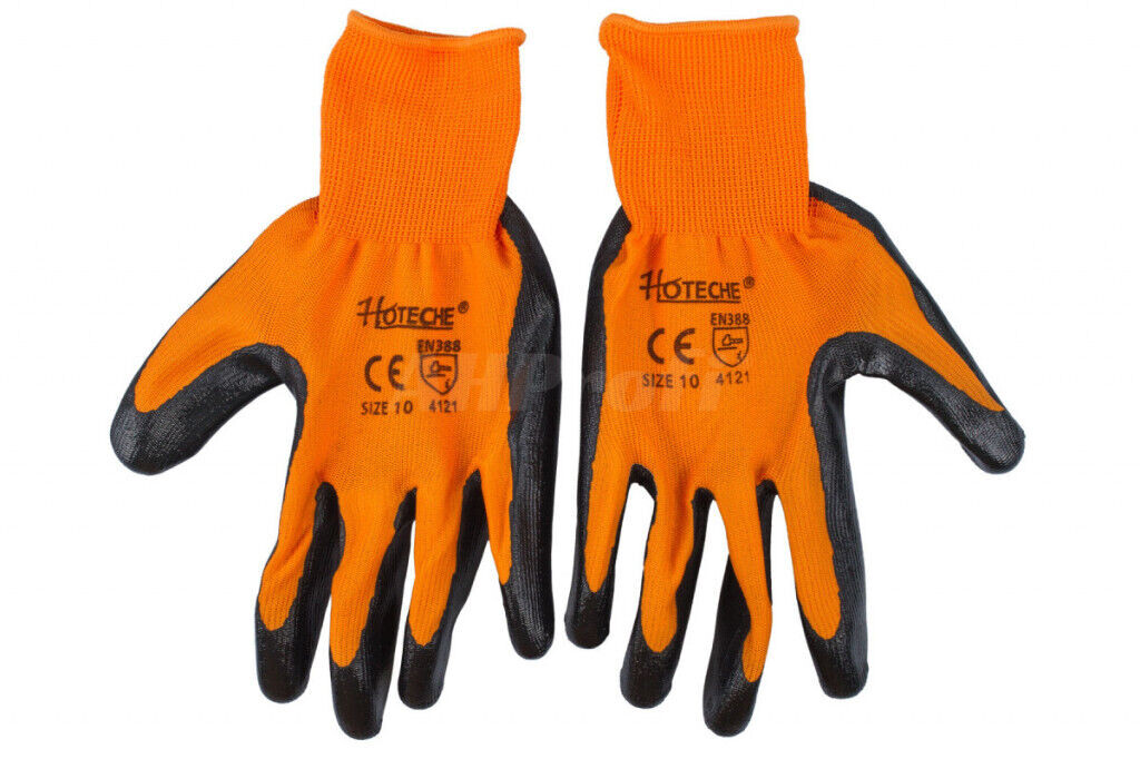 Ochranné pracovné rukavice značky Hoteche vyrobené z polyesteru a nitrilu.