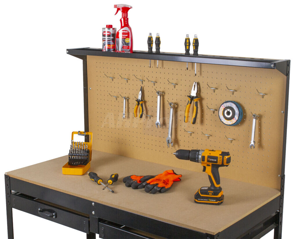 Viacúčelový dielenský stôl pre široké použitie nie len do garáže či dielne.