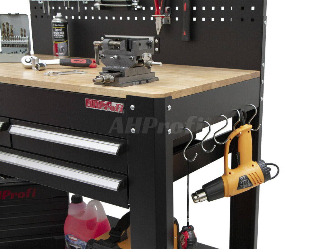 Pod pracovnou doskou sa nachádzajú 3 zásuvky, do ktorých sa zmestí množstvo ručného náradia.