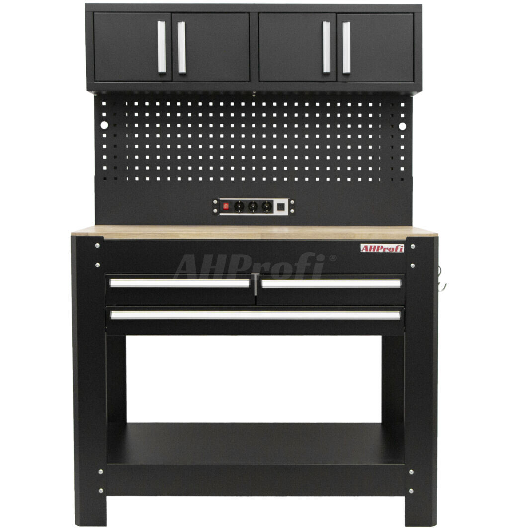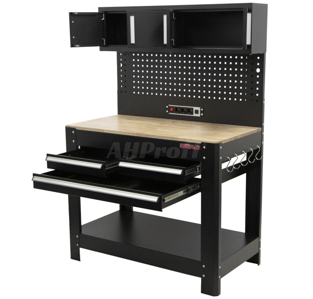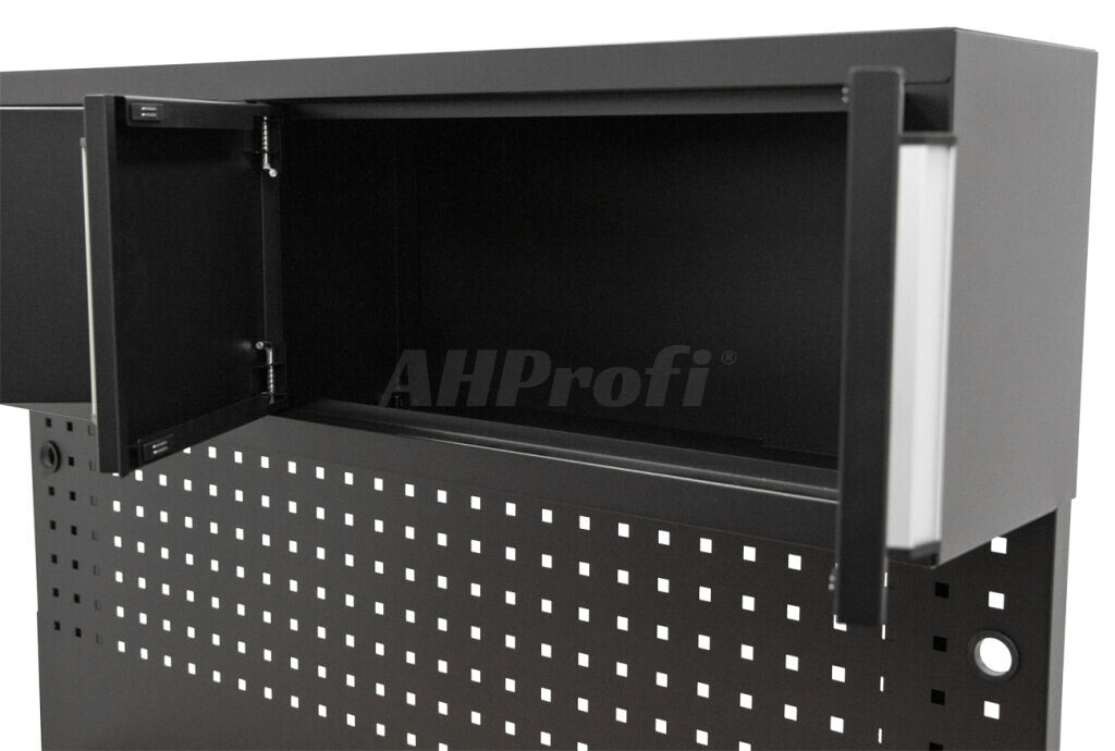Pracovný stôl s dierovanou doskou, 3 zásuvkami a hornými skrinkami - AHProfi