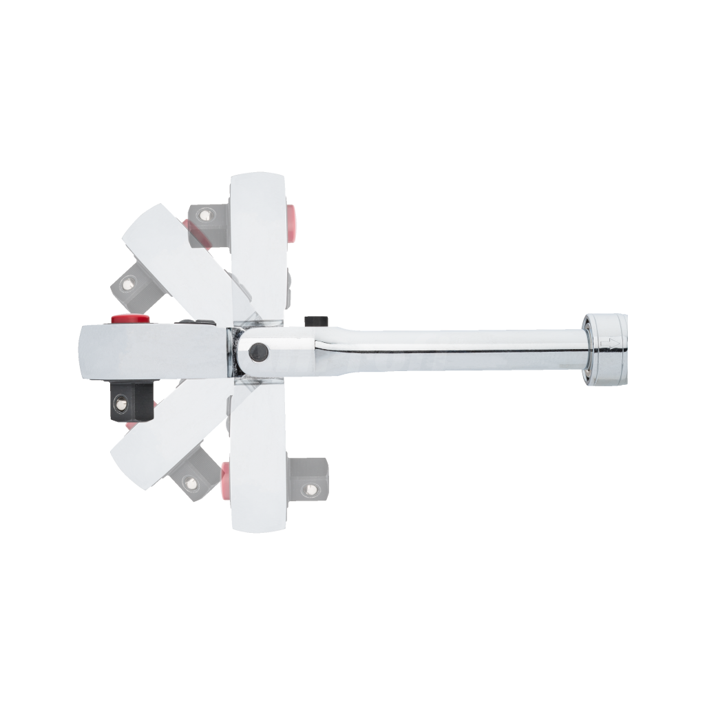 Teleskopická, kĺbová, prepínacia račňa 1/2" o dĺžke v rozpätí 350-490 mm. 5 stupňov aretácie a otočná hlava o 180°.