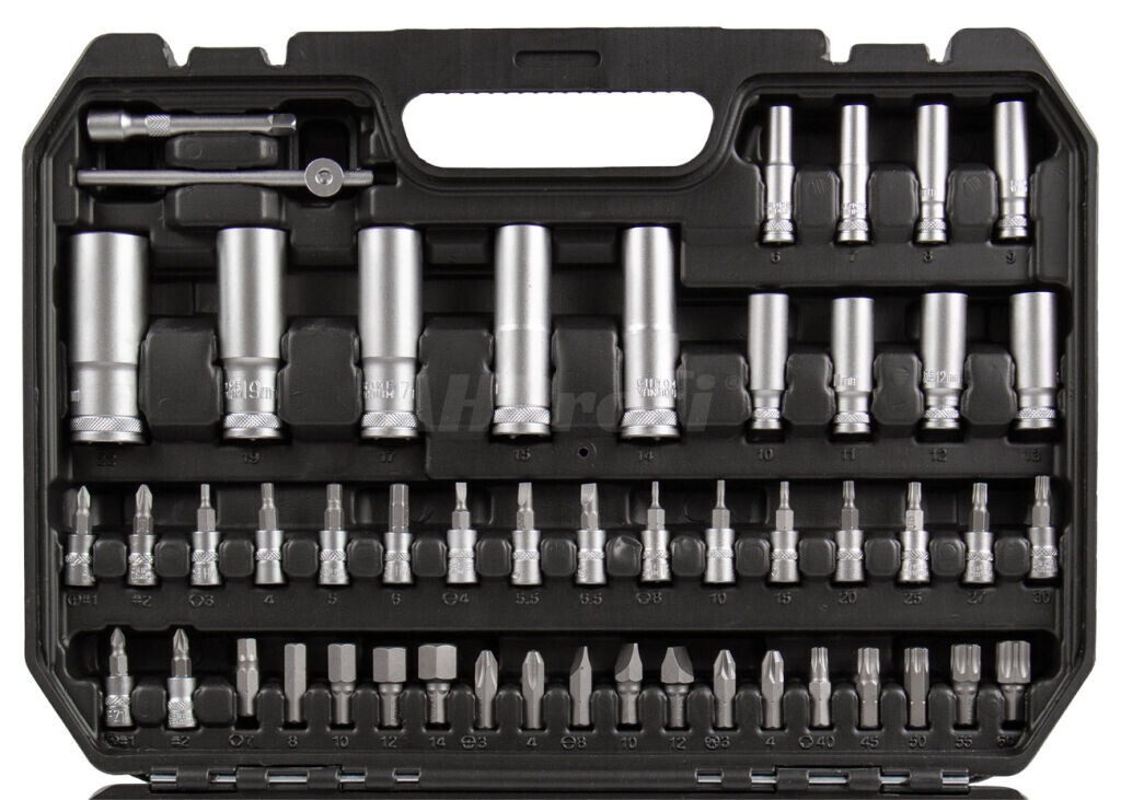 - Komplexný obsah vrátane ráčien, nástrčných kľúčov, nadstavcov, bitov a pod.