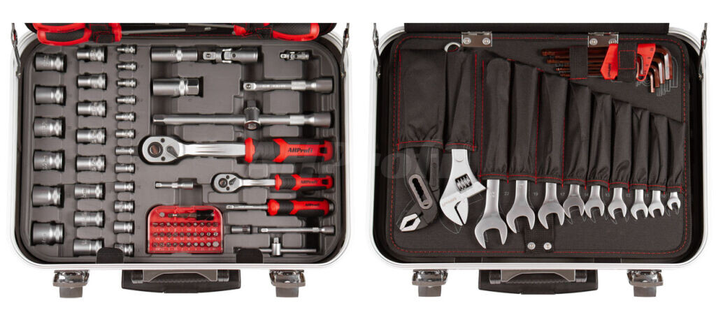 - Komplexný obsah vrátane rační, VDE náradia, očkoplochých kľúčov, nástrčných kľúčov, bitov a ďalších.