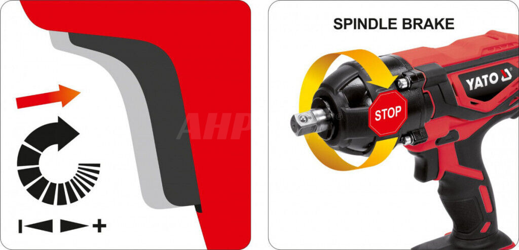 Uťahovák má vďaka spúšte plynule regulovateľné otáčky. Akumulátor je vybavený 4 stupňovou indikáciou nabitia.