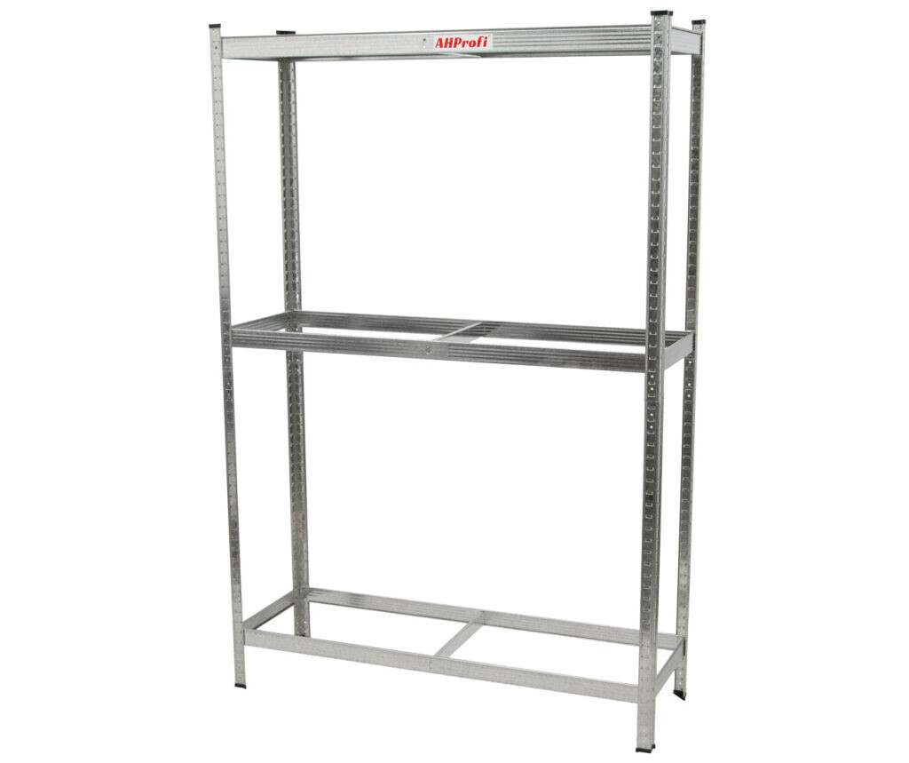 Stabilitu regálu zabezpečujú 4 kovové stojky. Všetky 3 police možno zasadiť do ľubovoľnej výšky podľa potreby po 22 mm.