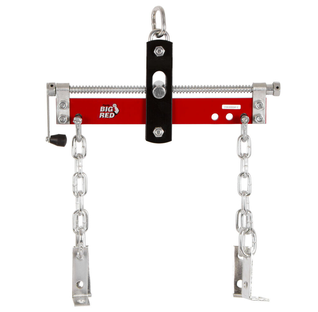 Prídavný závesný držiak na vyrovnávanie a vyvažovanie ťažkých bremien ako sú motory, prevodovky a pod.