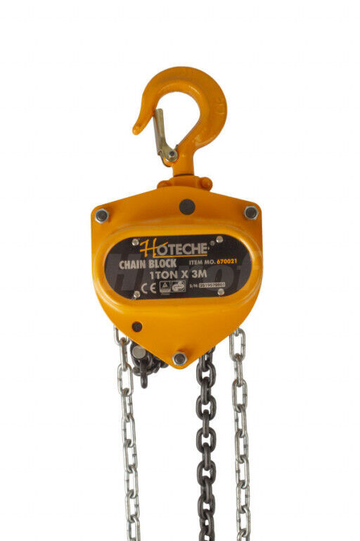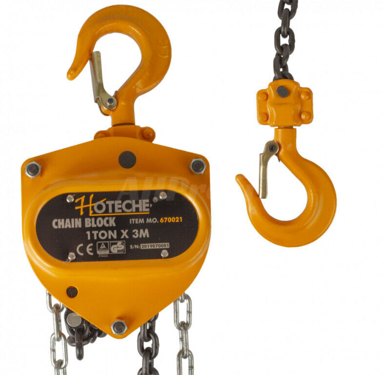 Prenosný reťazový kladkostroj od značka Hoteche, určený pre zvislé zdvíhanie bremien do maximálnej váhy 1000 kg.