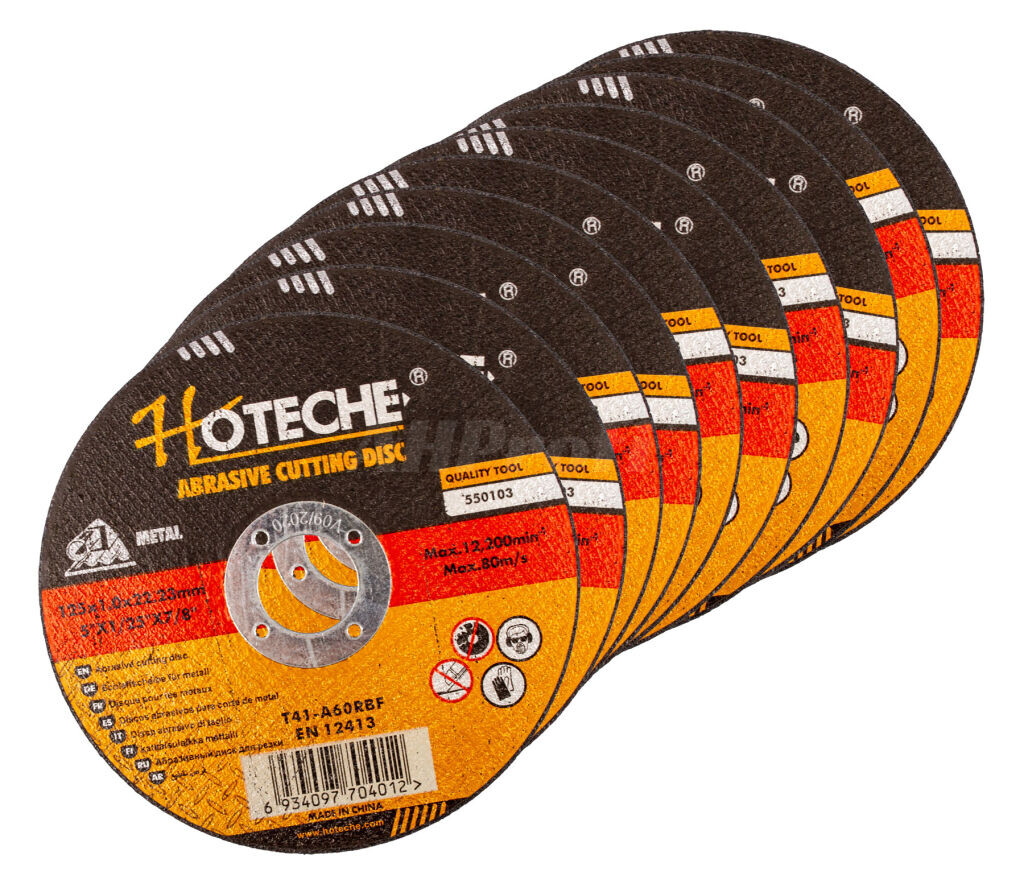 Sada 10 ks rezných kotúčov s priemerom 125 mm. Upínací otvor 22,23 mm.