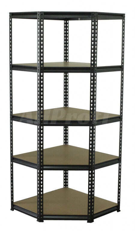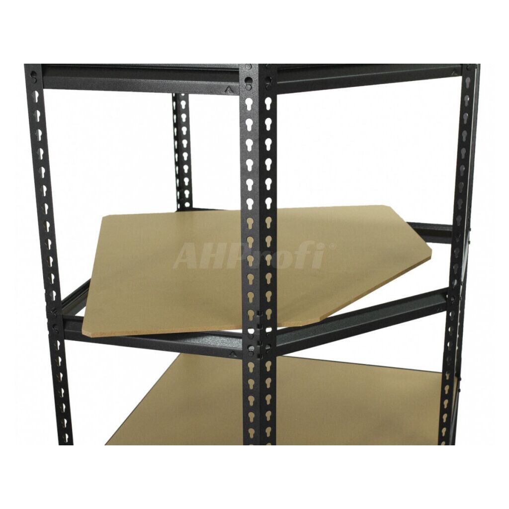 Rohový policový regál o rozmeroch 1830 x 730 x 730 mm s nosnosťou 150 kg. 5 políc.