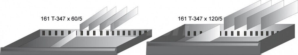 - Sada oddeľovacích plechov sa skladá z 5 oddeľovacích plechov, 347 mm dĺžky, 120 mm výšky