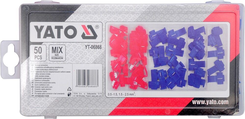 50 ks rýchlospojek na káble, červené 0,5 - 1,5 mm2 a modré 1,5 - 2,5 mm2, pre slaboprúdé aj silnejšie pripojenie.