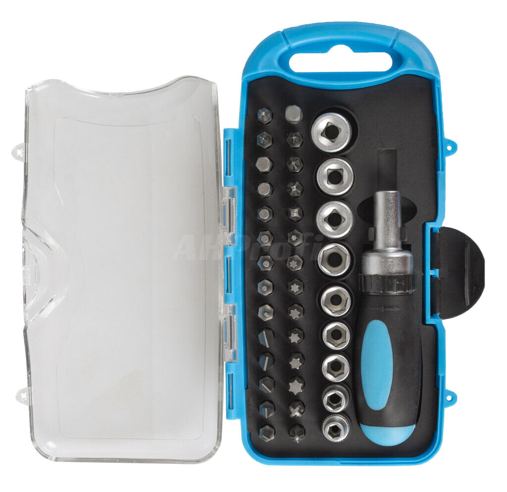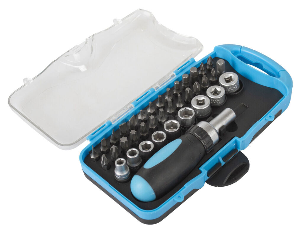 Sada 38 kusov bitov s račňovým skrutkovačom. Sada je prehľadne uložená v plastovom boxe. Sada sa skvele hodí do domácnosti alebo garáže pre drobné opravy a pod.