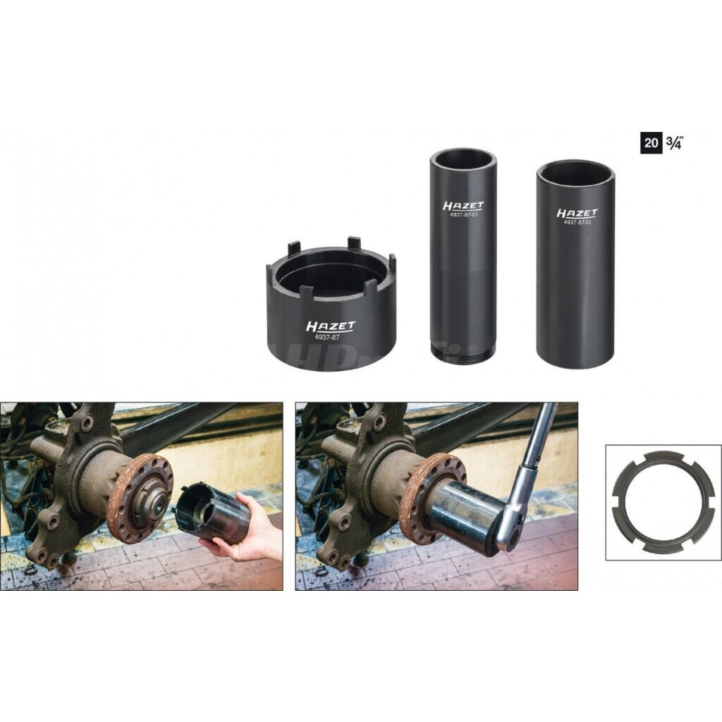 Sada kvalitných čapových kľúčov od nemeckého výrobcu HAZET, pre úžitkové automobily MAN a Mercedes-Benz, pre opravy a údržbu nábojov kolies apod.
