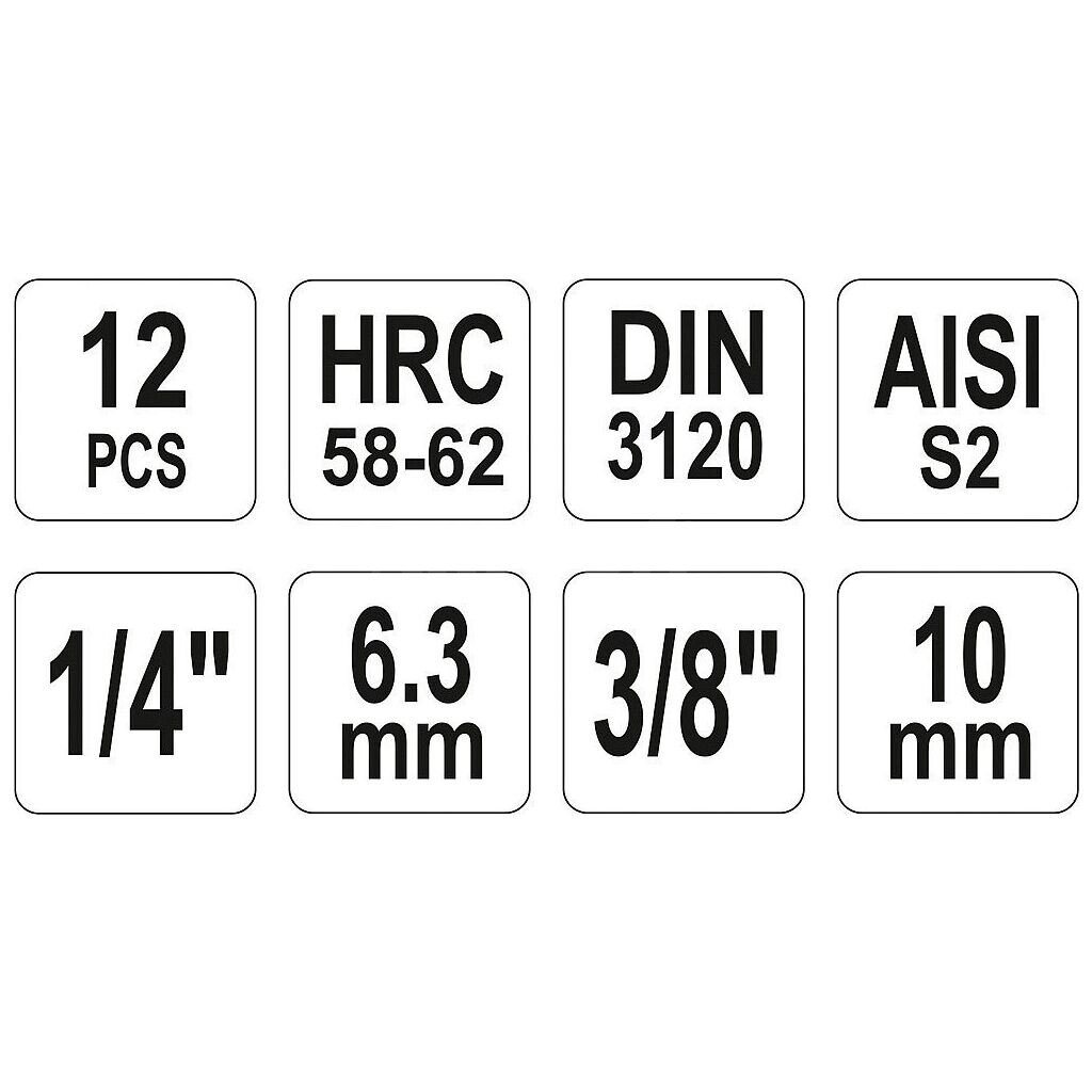 Sada hlavíc s bitmi TORX 1/4 "a 3/8" 12 ks - YT-04331